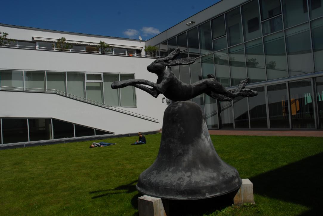 Barry Flanagan/Harebell on Portland stone piers, 1983