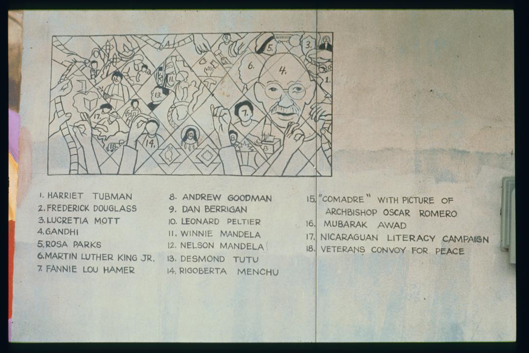 peace activists quilt wall painting legend