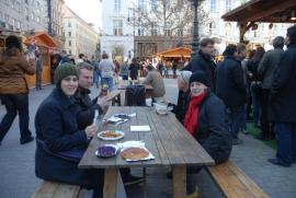 Philipp buying a potato pancake with cream