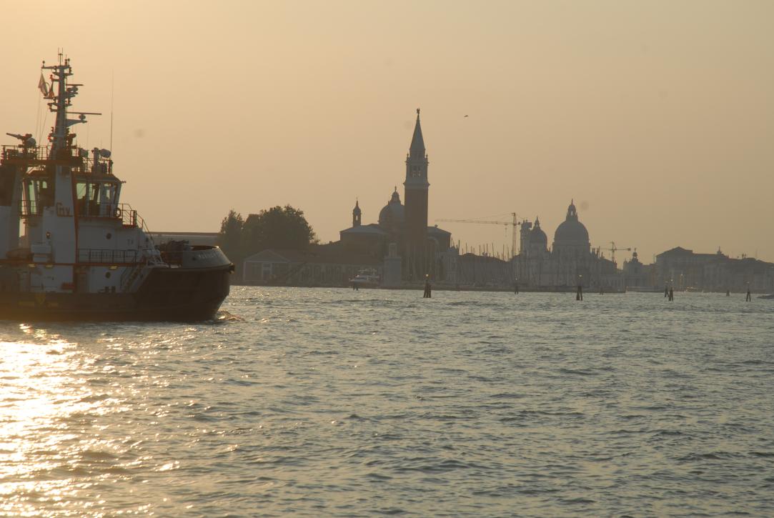 (88. /ex lightbox) Venice view from the giardini shore with freight ship