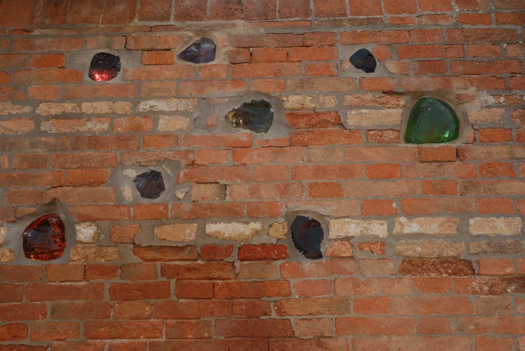 (103. /ex lightbox) Murano (?) Glass stones in Brick Wall
