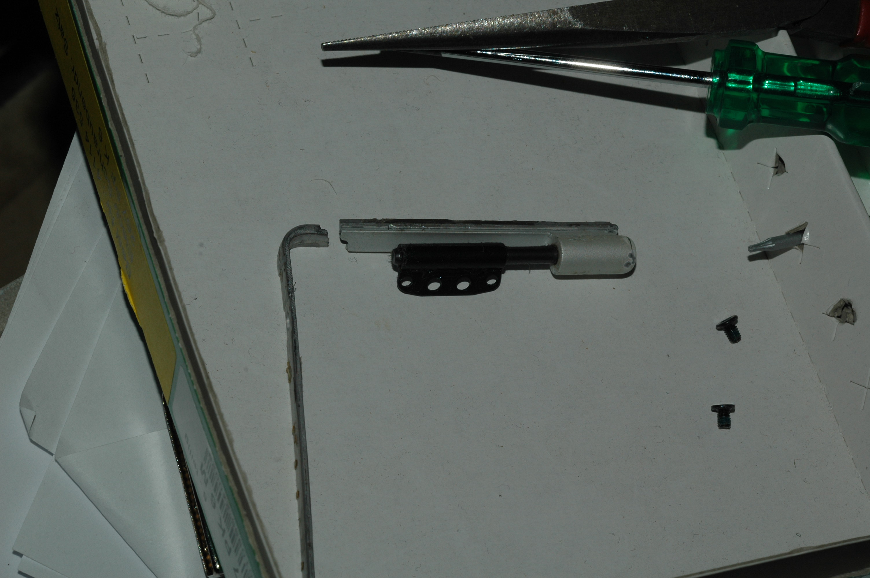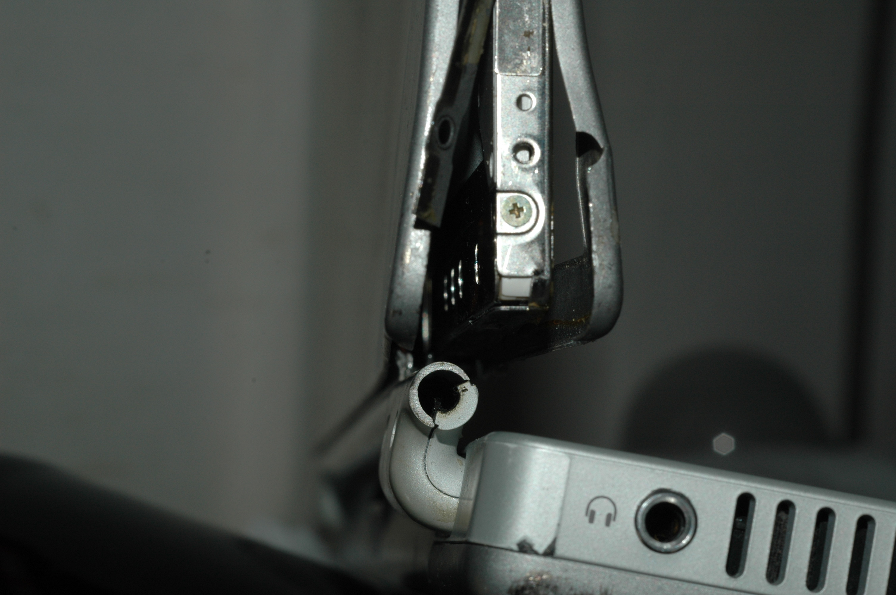 broken ti powerbook g4 (867) left hinge (from user perspective, opposite power cord)